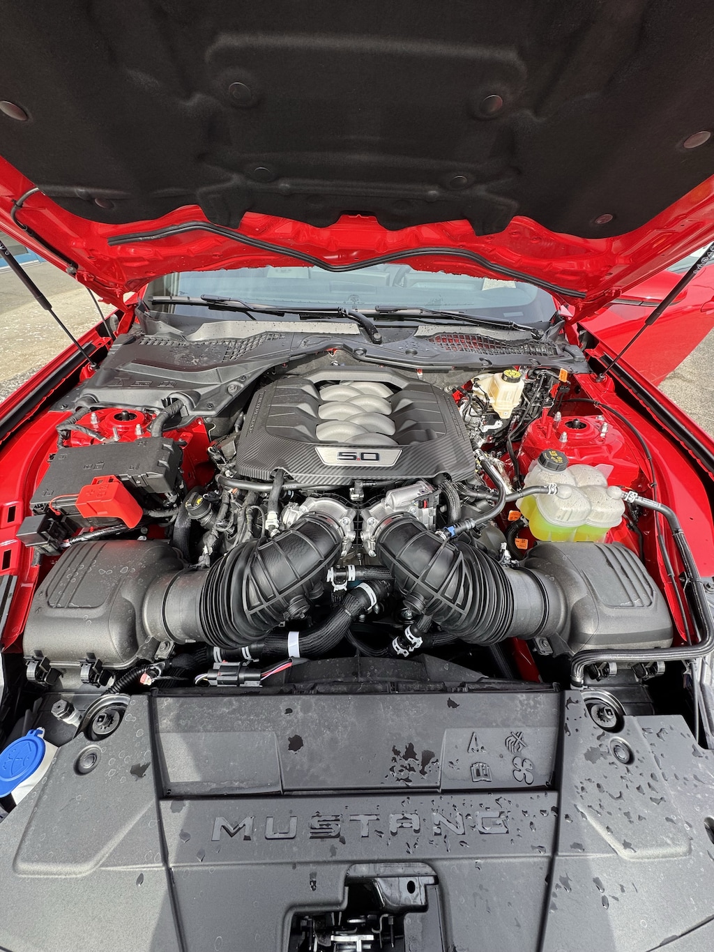 ENGINE: 5.0L TI-VCT V8 -inc: stop/start system and Port Fueled Direct Injection (PFDI) (STD),Rear Wheel Drive,Power Steering,ABS,4-Wheel Disc Brakes,Brake Assist,Locking/Limited Slip Differential,Aluminum Wheels,Tires - Front Performance,Tires - Rear Performance,Power Mirror(s),Rear Defrost,Intermittent Wipers,Variable Speed Intermittent Wipers,Rain Sensing Wipers,Daytime Running Lights,Automatic Headlights,LED Headlights,Automatic Highbeams,AM/FM Stereo,Steering Wheel Audio Controls,Bluetooth Connection,Pass-Through Rear Seat,Rear Bench Seat,Adjustable Steering Wheel,WiFi Hotspot,Leather Steering Wheel,Cruise Control,Climate Control,Multi-Zone A/C,A/C,Bucket Seats,Driver Vanity Mirror,Passenger Vanity Mirror,Driver Illuminated Vanity Mirror,Passenger Illuminated Visor Mirror,Telematics,Smart Device Integration,Power Windows,Immobilizer,Stability Control,Front Side Air Bag,Rear Parking Aid,Blind Spot Monitor,Cross-Traffic Alert,Rear Collision Mitigation,Lane Keeping Assist,Front Collision Mitigation,Driver Monitoring,Tire Pressure Monitor,Driver Air Bag,Passenger Air Bag,Front Head Air Bag,Rear Head Air Bag,Passenger Air Bag Sensor,Knee Air Bag,Back-Up Camera,HD Radio