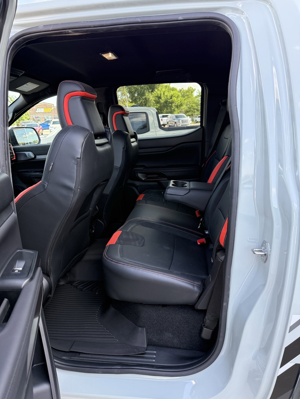 EBONY LEATHER-TRIMMED FRONT HEATED BUCKET SEATS -inc: 10-way power adjustable driver including power lumbar 8-way power adjustable passenger including power lumbar memory driver flow-through console and floor shift,TRANSMISSION: ELECTRONIC 10-SPEED AUTOMATIC -inc: selectable drive modes: normal sport tow/haul slippery off-road rock crawl and Baja (STD),EQUIPMENT GROUP 800A STANDARD,FRONT LICENSE PLATE BRACKET -inc: Standard in states where required by law optional to all others,ENGINE: 3.0L ECOBOOST V6 -inc: auto start-stop technology (STD),RAPTOR DECAL,CACTUS GREY,BODY-COLOR SECURICODE KEYLESS ENTRY KEYPAD,TOUGH BED SPRAY-IN BEDLINER,WHEELS: 17 FORGED BEADLOCK CAPABLE,Turbocharged,Four Wheel Drive,Locking/Limited Slip Differential,Locking/Limited Slip Differential,Tow Hitch,Power Steering,ABS,4-Wheel Disc Brakes,Brake Assist,Locking/Limited Slip Differential,Aluminum Wheels,Tires - Front All-Terrain,Tires - Rear All-Terrain,Conventional Spare Tire,Tow Hooks,Tow Hooks,Heated Mirrors,Power Mirror(s),Integrated Turn Signal Mirrors,Power Folding Mirrors,Rear Defrost,Privacy Glass,Intermittent Wipers,Variable Speed Intermittent Wipers,Rain Sensing Wipers,Running Boards/Side Steps,Power Door Locks,Automatic Highbeams,Fog Lamps,Daytime Running Lights,Automatic Headlights,LED Headlights,AM/FM Stereo,Premium Sound System,Satellite Radio,MP3 Capability,Bluetooth Connection,HD Radio,Requires Subscription,MP3 Capability,Steering Wheel Audio Controls,Auxiliary Audio Input,Satellite Radio,Requires Subscription,Navigation System,Bluetooth Connection,Telematics,WiFi Hotspot,Smart Device Integration,Requires Subscription,Bluetooth Connection,Rear Bench Seat,Adjustable Steering Wheel,Trip Computer,Power Windows,WiFi Hotspot,Leather Steering Wheel,Heated Steering Wheel,Keyless Entry,Power Door Locks,Keyless Entry,Power Door Locks,Keyless Start,Universal Garage Door Opener,Cruise Control,Adaptive Cruise Control,Climate Control,Multi-Zone A/C,A/C,Power Driver Seat,Power Passenger Seat,Leather Seats,Bucket Seats,Heated Front Seat(s),Driver Adjustable Lumbar,Passenger Adjustable Lumbar,Seat Memory,Auto-Dimming Rearview Mirror,Driver Vanity Mirror,Passenger Vanity Mirror,Driver Illuminated Vanity Mirror,Passenger Illuminated Visor Mirror,Floor Mats,Remote Engine Start,Smart Device Integration,Requires Subscription,Smart Device Integration,Navigation System,Seat Memory,Remote Engine Start,Keyless Start,Power Windows,Power Door Locks,Trip Computer,Seat Memory,Security System,Immobilizer,Traction Control,Stability Control,Traction Control,Front Side Air Bag,Telematics,Requires Subscription,Lane Departure Warning,Lane Keeping Assist,Lane Departure Warning,Front Collision Mitigation,Blind Spot Monitor,Cross-Traffic Alert,Rear Collision Mitigation,Driver Monitoring,Aerial View Display System,Rear Parking Aid,Automatic Parking,Tire Pressure Monitor,Driver Air Bag,Passenger Air Bag,Front Head Air Bag,Rear Head Air Bag,Passenger Air Bag Sensor,Driver Restriction Features,Child Safety Locks,Back-Up Camera
