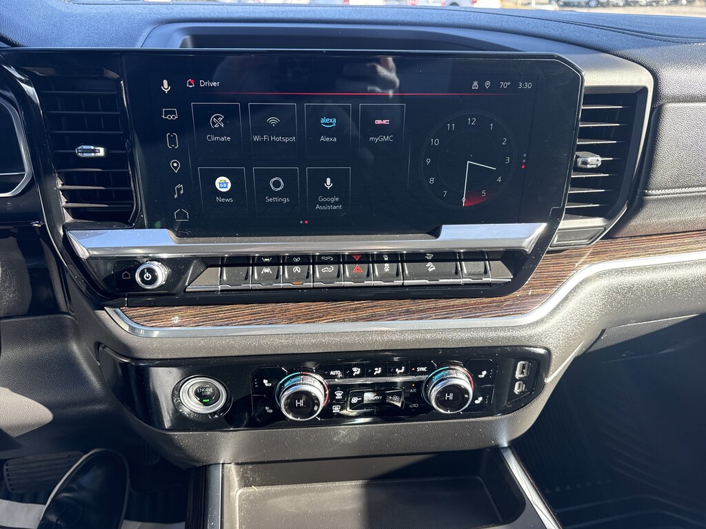 featuring wireless Android Auto and Apple CarPlay capability for compatible phones (STD),JET BLACK CLOTH SEAT TRIM,ELEVATION PREFERRED EQUIPMENT GROUP includes standard equipment,ENGINE DURAMAX 3.0L TURBO-DIESEL I6 (305 hp [227 kW] @ 3750 rpm 495 lb-ft of torque [671 Nm] @ 2750 rpm) (Includes (KW5) 220-amp alternator and (K05) engine block heater.,LPO GMC MULTIPRO TAILGATE STEP LIGHTS (dealer-installed),WIRELESS CHARGING Beginning October 26 2022 through November 20 2022 certain vehicles will be forced to include (00C) Not Equipped with Wireless Charging which removes Wireless Charging. See dealer for details or the window label for the features on a specific vehicle.),Tow Hitch,Lane Departure Warning,Lane Keeping Assist,Front Collision Mitigation,Front Collision Warning,Automatic Highbeams,Turbocharged,High Output,Keyless Start,Locking/Limited Slip Differential,Four Wheel Drive,Tow Hooks,Power Steering,ABS,4-Wheel Disc Brakes,Aluminum Wheels,Tires - Front All-Season,Tires - Rear All-Season,Tires - Front All-Season,Tires - Rear All-Season,Daytime Running Lights,LED Headlights,Automatic Highbeams,Fog Lamps,Heated Mirrors,Power Mirror(s),Privacy Glass,Integrated Tailgate Step,AM/FM Stereo,Navigation System,MP3 Capability,Bluetooth Connection,Auxiliary Audio Input,Smart Device Integration,Satellite Radio,Requires Subscription,Satellite Radio,Requires Subscription,Bluetooth Connection,Bluetooth Connection,Smart Device Integration,Steering Wheel Audio Controls,WiFi Hotspot,Split Bench Seat,Cloth Seats,Power Driver Seat,Driver Adjustable Lumbar,Heated Front Seat(s),Floor Mats,Floor Mats,Adjustable Steering Wheel,Heated Steering Wheel,Power Windows,Power Windows,Power Windows,Power Door Locks,Keyless Entry,Power Door Locks,Keyless Start,Remote Engine Start,Cruise Control,Security System,MP3 Capability,Auxiliary Audio Input,Climate Control,Multi-Zone A/C,A/C,Rear Defrost,Front Collision Mitigation,Front Collision Warning,Front Collision Mitigation,Front Collision Warning,Traction Control,Stability Control,Daytime Running Lights,Driver Air Bag,Passenger Air Bag,Front Side Air Bag,Front Head Air Bag,Rear Head Air Bag,Passenger Air Bag Sensor,Telematics,Requires Subscription,Back-Up Camera,Front Collision Warning,Lane Departure Warning,Lane Keeping Assist,Tire Pressure Monitor,Telematics,WiFi Hotspot,Requires Subscription