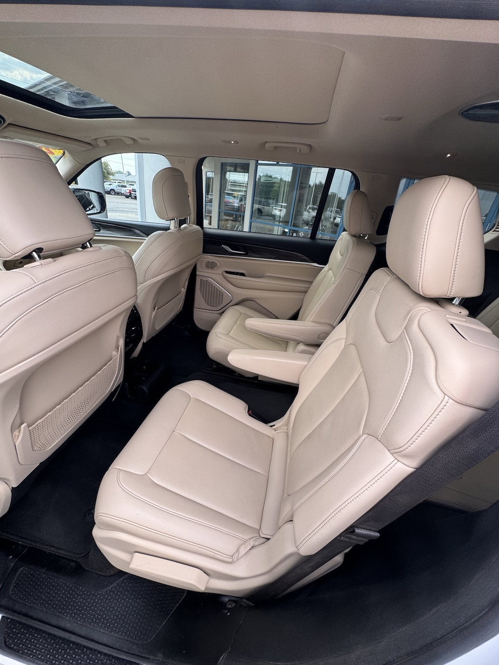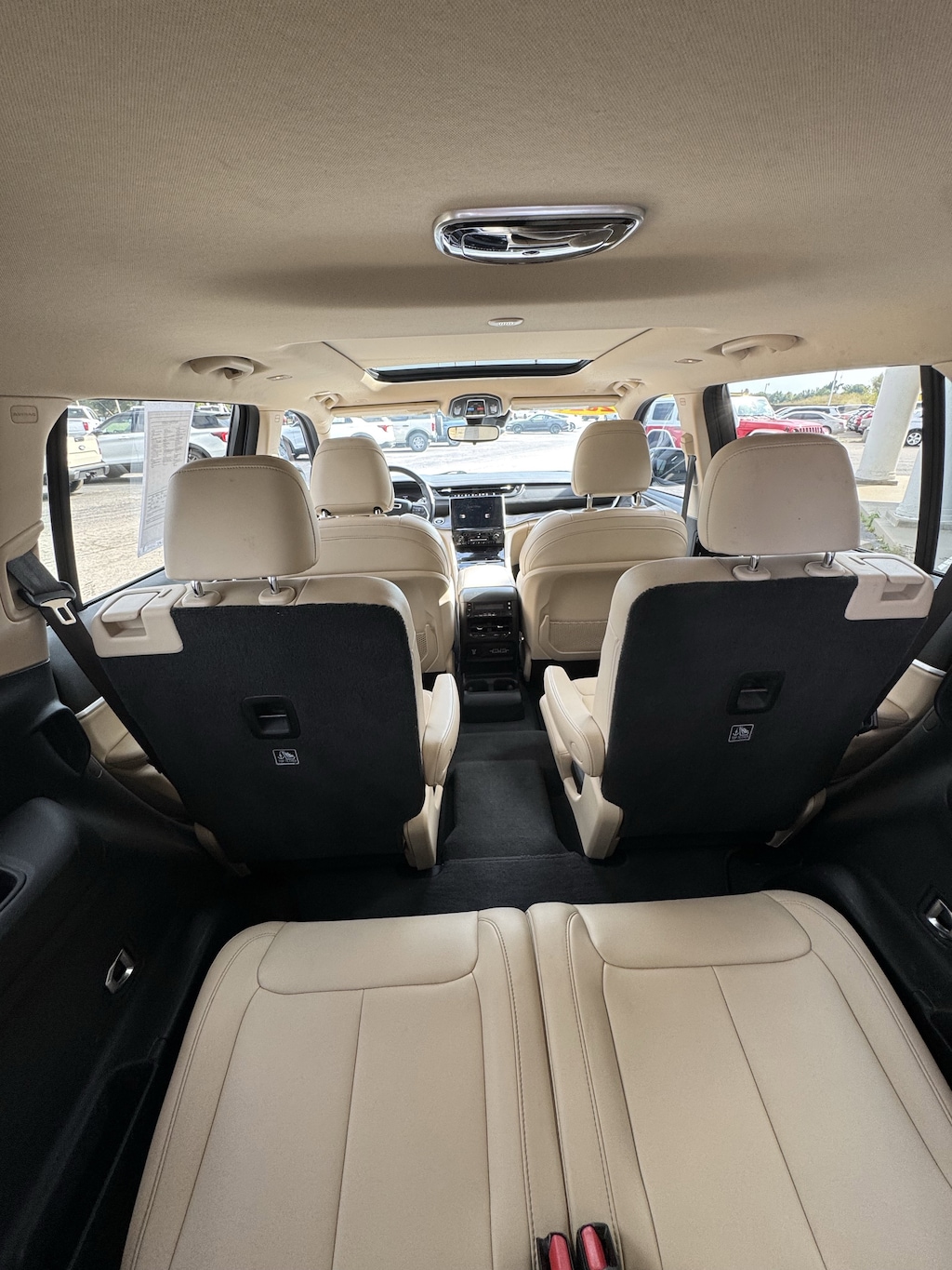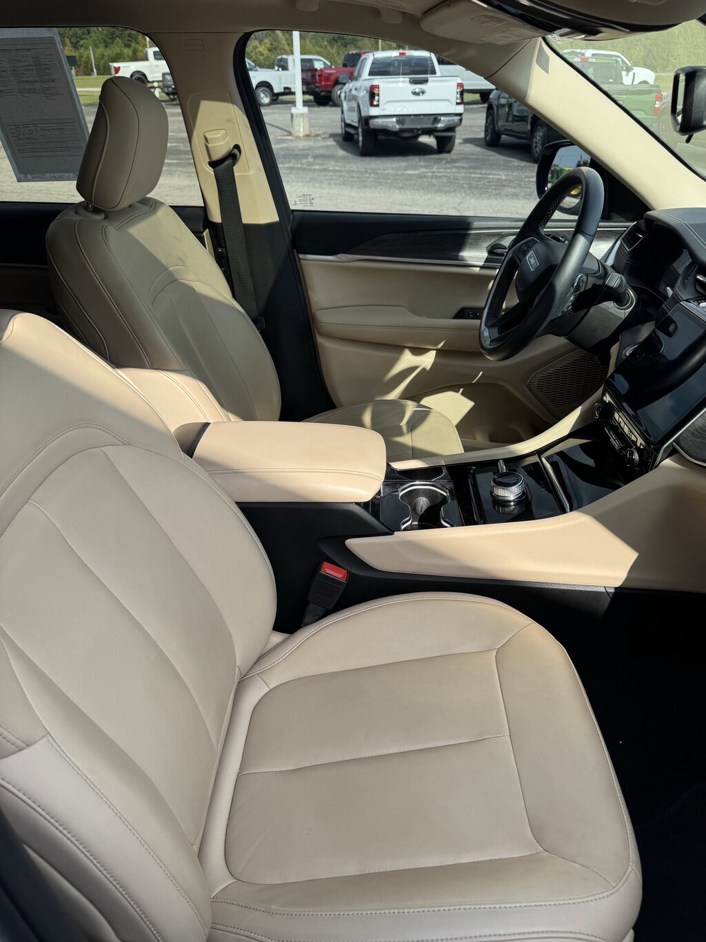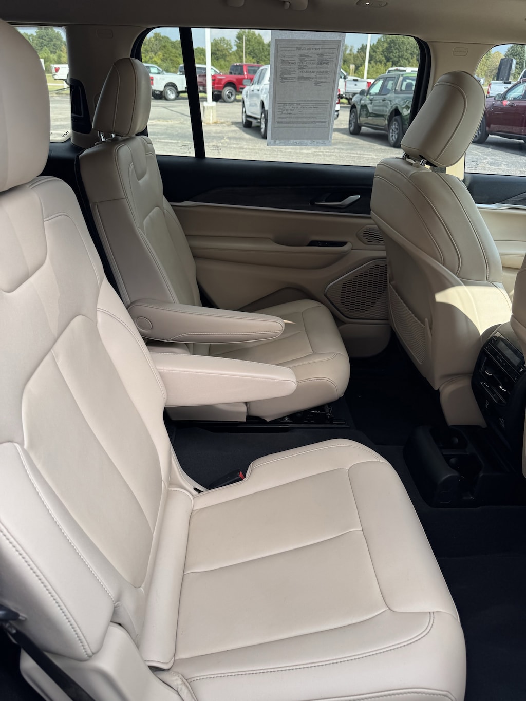 WHEELS: 20 X 8.5 POLISHED/PAINTED ALUMINUM -inc: Bridgestone Brand Tires Tires: 265/50R20 BSW A/S LRR (DISC),BRIGHT WHITE CLEARCOAT,ENGINE: 3.6L V6 24V VVT UPG I W/ESS (STD),TRANSMISSION: 8-SPEED AUTOMATIC (850RE) (STD),TIRES: 265/50R20 BSW A/S LRR,WICKER BEIGE/BLACK CAPRI LEATHER SEATS,DUAL PANE PANORAMIC SUNROOF -inc: Interior Rear Facing Camera,RADIO: UCONNECT 5 NAV W/10.1 DISPLAY -inc: premium 9 speaker alpine audio system 10.1 Touchscreen Display 9 Amplified Speakers w/Subwoofer HD Radio GPS Navigation 506 Watt Amplifier Connected Travel & Traffic Services,QUICK ORDER PACKAGE 22E -inc: Engine: 3.6L V6 24V VVT UPG I w/ESS Transmission: 8-Speed Automatic (850RE),Four Wheel Drive,Power Steering,ABS,4-Wheel Disc Brakes,Brake Assist,Aluminum Wheels,Temporary Spare Tire,Heated Mirrors,Power Mirror(s),Integrated Turn Signal Mirrors,Rear Defrost,Privacy Glass,Intermittent Wipers,Variable Speed Intermittent Wipers,Rear Spoiler,Remote Trunk Release,Power Liftgate,Power Door Locks,Daytime Running Lights,Automatic Headlights,LED Headlights,Fog Lamps,Automatic Highbeams,AM/FM Stereo,Satellite Radio,Bluetooth Connection,HD Radio,Requires Subscription,Premium Sound System,MP3 Capability,Steering Wheel Audio Controls,Auxiliary Audio Input,Premium Sound System,Satellite Radio,HD Radio,Requires Subscription,Satellite Radio,HD Radio,Requires Subscription,Power Driver Seat,Power Passenger Seat,Mirror Memory,Driver Adjustable Lumbar,Seat Memory,Heated Front Seat(s),Power Driver Seat,Driver Adjustable Lumbar,Power Passenger Seat,Passenger Adjustable Lumbar,Bucket Seats,Rear Bucket Seats,Heated Rear Seat(s),Adjustable Steering Wheel,Trip Computer,Power Windows,WiFi Hotspot,3rd Row Seat,Leather Steering Wheel,Heated Steering Wheel,Keyless Entry,Power Door Locks,Keyless Start,Keyless Entry,Power Door Locks,Universal Garage Door Opener,Cruise Control,Adaptive Cruise Control,Climate Control,Multi-Zone A/C,A/C,A/C,Rear A/C,Woodgrain Interior Trim,Leather Seats,Bucket Seats,Driver Vanity Mirror,Passenger Vanity Mirror,Driver Illuminated Vanity Mirror,Passenger Illuminated Visor Mirror,Floor Mats,Mirror Memory,Seat Memory,Remote Engine Start,Keyless Start,Smart Device Integration,Smart Device Integration,Bluetooth Connection,Power Windows,Power Door Locks,Trip Computer,Security System,Immobilizer,Traction Control,Stability Control,Traction Control,Front Side Air Bag,Telematics,Requires Subscription,Rear Parking Aid,Blind Spot Monitor,Cross-Traffic Alert,Rear Collision Mitigation,Lane Departure Warning,Lane Keeping Assist,Lane Departure Warning,Front Collision Mitigation,Tire Pressure Monitor,Driver Air Bag,Passenger Air Bag,Front Head Air Bag,Rear Head Air Bag,Passenger Air Bag Sensor,Knee Air Bag,Child Safety Locks,Back-Up Camera