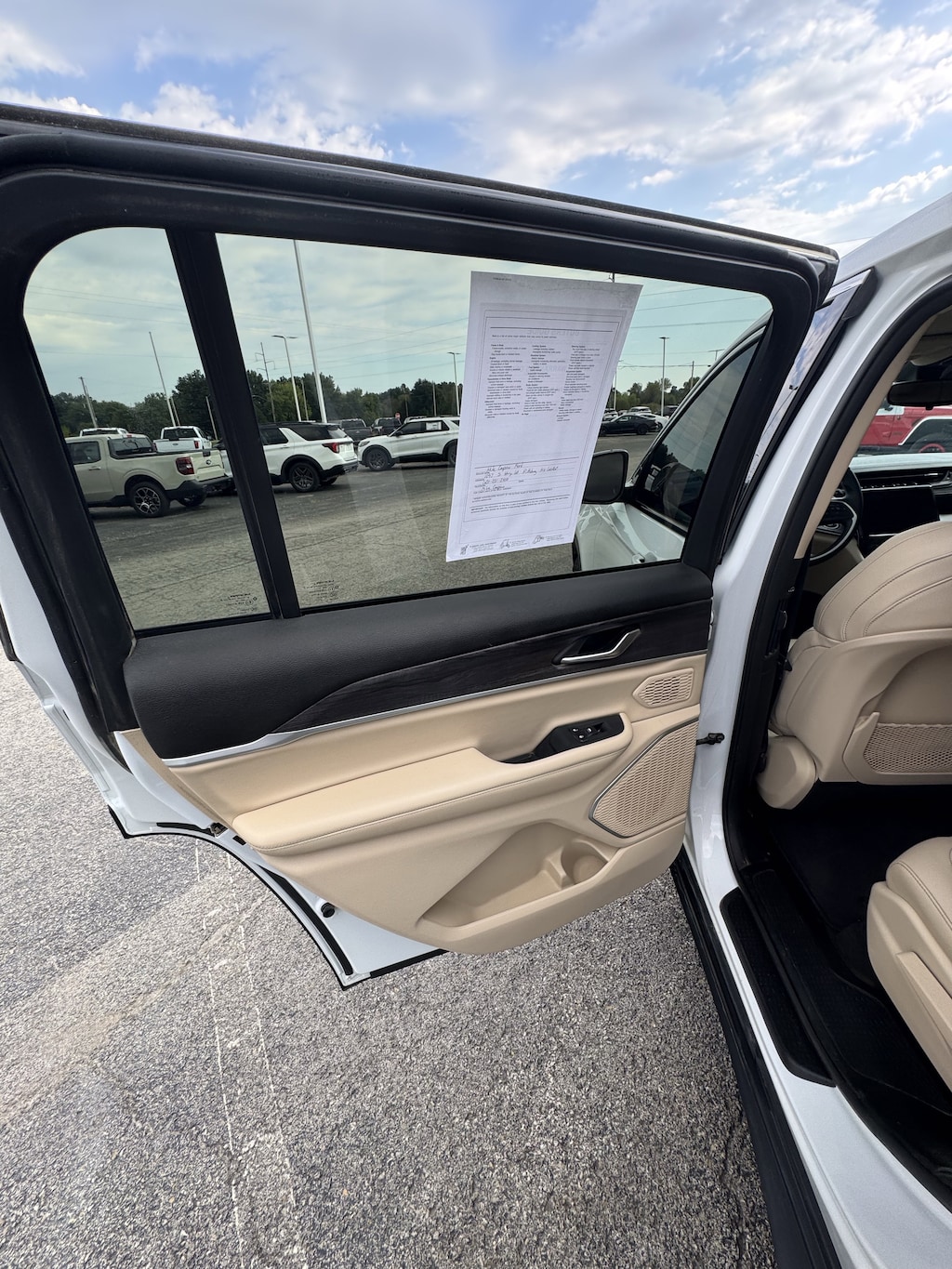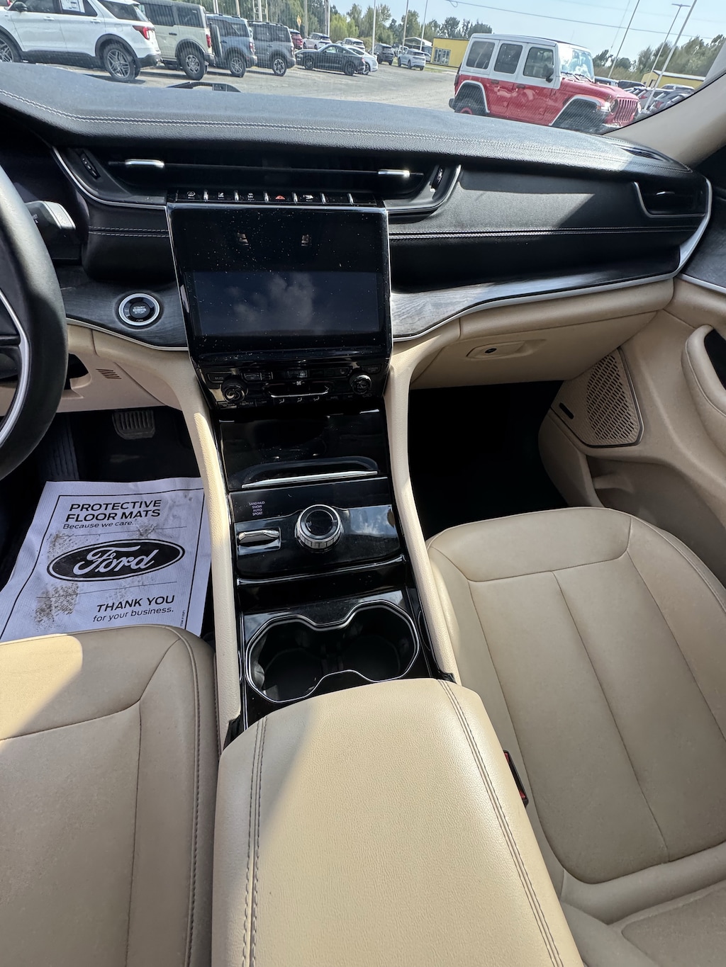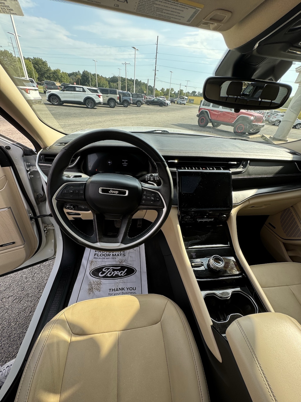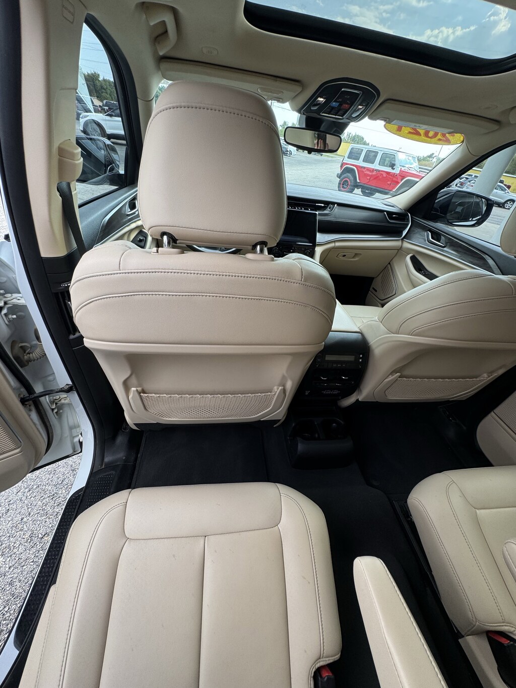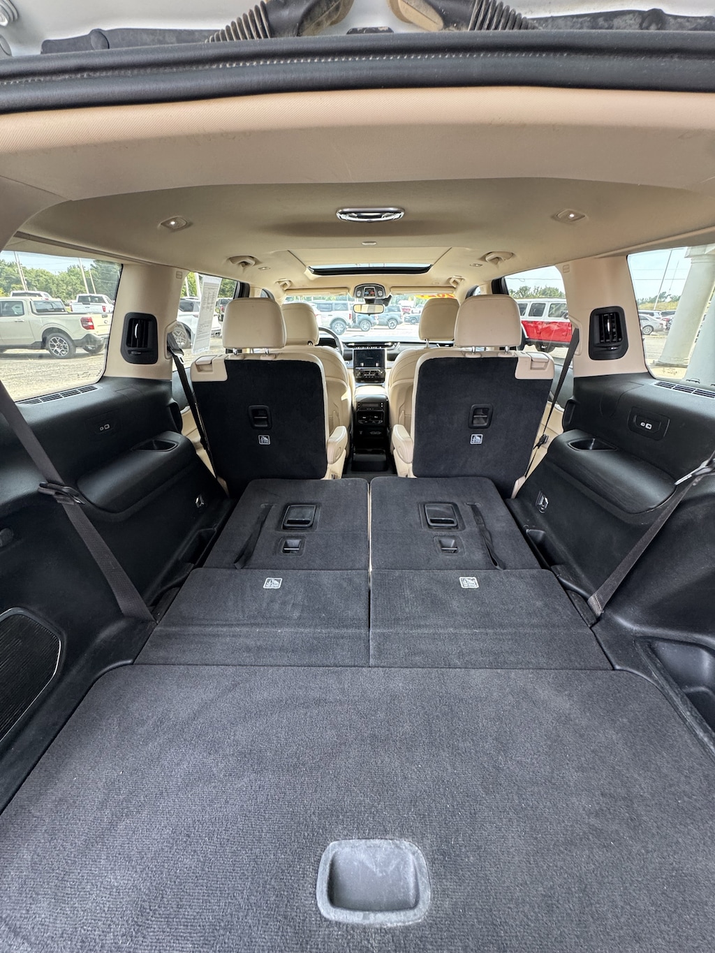 WHEELS: 20 X 8.5 POLISHED/PAINTED ALUMINUM -inc: Bridgestone Brand Tires Tires: 265/50R20 BSW A/S LRR (DISC),BRIGHT WHITE CLEARCOAT,ENGINE: 3.6L V6 24V VVT UPG I W/ESS (STD),TRANSMISSION: 8-SPEED AUTOMATIC (850RE) (STD),TIRES: 265/50R20 BSW A/S LRR,WICKER BEIGE/BLACK CAPRI LEATHER SEATS,DUAL PANE PANORAMIC SUNROOF -inc: Interior Rear Facing Camera,RADIO: UCONNECT 5 NAV W/10.1 DISPLAY -inc: premium 9 speaker alpine audio system 10.1 Touchscreen Display 9 Amplified Speakers w/Subwoofer HD Radio GPS Navigation 506 Watt Amplifier Connected Travel & Traffic Services,QUICK ORDER PACKAGE 22E -inc: Engine: 3.6L V6 24V VVT UPG I w/ESS Transmission: 8-Speed Automatic (850RE),Four Wheel Drive,Power Steering,ABS,4-Wheel Disc Brakes,Brake Assist,Aluminum Wheels,Temporary Spare Tire,Heated Mirrors,Power Mirror(s),Integrated Turn Signal Mirrors,Rear Defrost,Privacy Glass,Intermittent Wipers,Variable Speed Intermittent Wipers,Rear Spoiler,Remote Trunk Release,Power Liftgate,Power Door Locks,Daytime Running Lights,Automatic Headlights,LED Headlights,Fog Lamps,Automatic Highbeams,AM/FM Stereo,Satellite Radio,Bluetooth Connection,HD Radio,Requires Subscription,Premium Sound System,MP3 Capability,Steering Wheel Audio Controls,Auxiliary Audio Input,Premium Sound System,Satellite Radio,HD Radio,Requires Subscription,Satellite Radio,HD Radio,Requires Subscription,Power Driver Seat,Power Passenger Seat,Mirror Memory,Driver Adjustable Lumbar,Seat Memory,Heated Front Seat(s),Power Driver Seat,Driver Adjustable Lumbar,Power Passenger Seat,Passenger Adjustable Lumbar,Bucket Seats,Rear Bucket Seats,Heated Rear Seat(s),Adjustable Steering Wheel,Trip Computer,Power Windows,WiFi Hotspot,3rd Row Seat,Leather Steering Wheel,Heated Steering Wheel,Keyless Entry,Power Door Locks,Keyless Start,Keyless Entry,Power Door Locks,Universal Garage Door Opener,Cruise Control,Adaptive Cruise Control,Climate Control,Multi-Zone A/C,A/C,A/C,Rear A/C,Woodgrain Interior Trim,Leather Seats,Bucket Seats,Driver Vanity Mirror,Passenger Vanity Mirror,Driver Illuminated Vanity Mirror,Passenger Illuminated Visor Mirror,Floor Mats,Mirror Memory,Seat Memory,Remote Engine Start,Keyless Start,Smart Device Integration,Smart Device Integration,Bluetooth Connection,Power Windows,Power Door Locks,Trip Computer,Security System,Immobilizer,Traction Control,Stability Control,Traction Control,Front Side Air Bag,Telematics,Requires Subscription,Rear Parking Aid,Blind Spot Monitor,Cross-Traffic Alert,Rear Collision Mitigation,Lane Departure Warning,Lane Keeping Assist,Lane Departure Warning,Front Collision Mitigation,Tire Pressure Monitor,Driver Air Bag,Passenger Air Bag,Front Head Air Bag,Rear Head Air Bag,Passenger Air Bag Sensor,Knee Air Bag,Child Safety Locks,Back-Up Camera