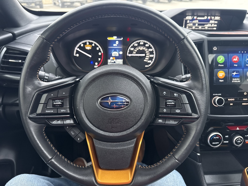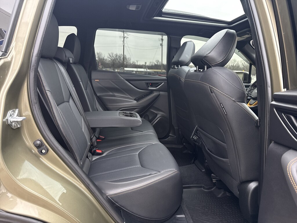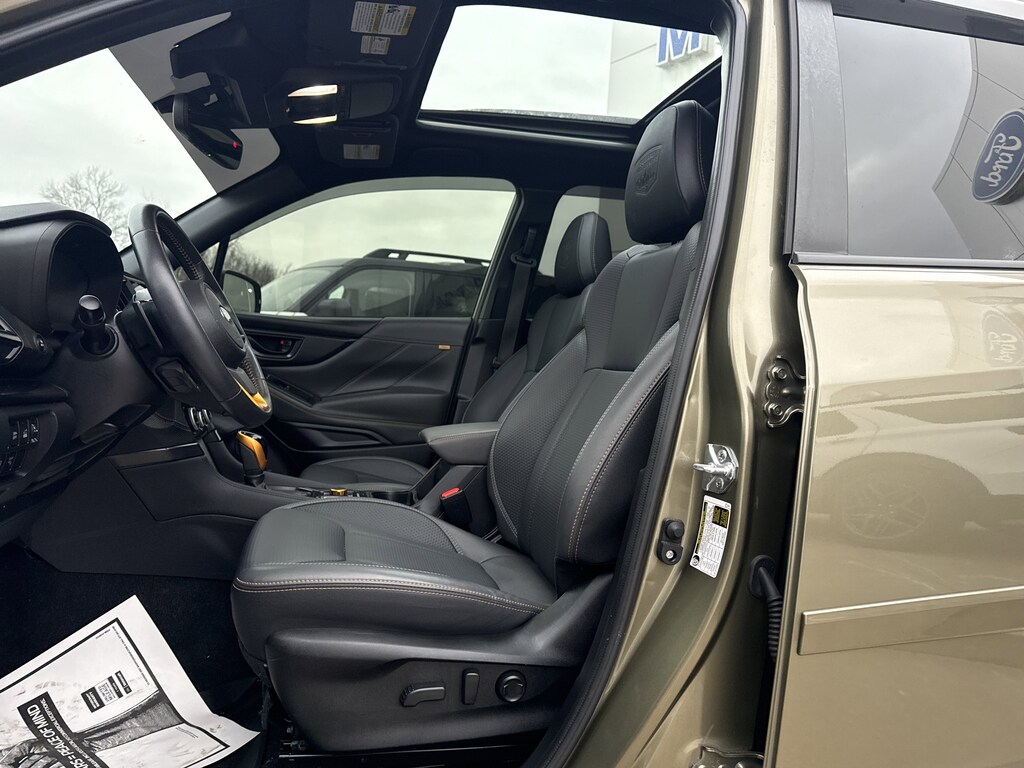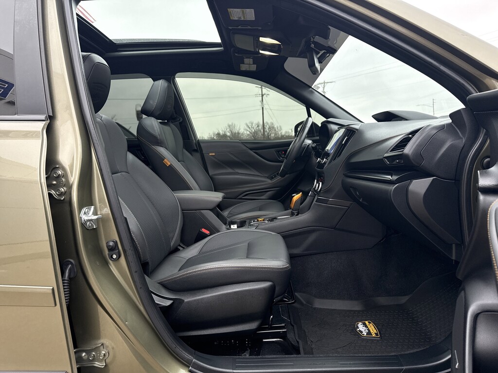 8 AUDIO W/HARMAN/KARDON & POWER REAR GATE -inc: Power Rear Gate automatic close and height memory Radio: Subaru STARLINK 8.0 Multimedia Nav System AM/FM stereo HD Radio multi-touch gesture high resolution display screen voice activated controls Bluetooth audio streaming hands-free phone connectivity and hands-free SMS text messaging connectivity (refer to subaru.com for cell phone compatibility) Near Field Communication (NFC) iPod control capability SiriusXM All Access radio (4 months free trial/subscription required after) smartphone integration for AHA Android Auto Apple CarPlay Pandora and STARLINK cloud applications (refer to subaru.com for app availability) USB and Over The Air (OTA) audio system update steering wheel controls for audio and Bluetooth 3.5mm auxiliary input jack and dual USB A input/charge ports harman/kardon 9-Speaker Audio System subwoofer and 576 watt equivalent maximum output amplifier Navigation System voice activated controls SiriusXM,AUTUMN GREEN METALLIC,CARPETED FLOOR MATS - WILDERNESS -inc: Part number J501SSJ050,SPLASH GUARDS - WILDERNESS -inc: Part number J101SSJ600,GRAY TEXTURED STARTEX UPHOLSTERY -inc: silver and copper stitching and embossed Subaru Wilderness logo on head restraints,EXTERIOR & INTERIOR AUTO-DIMMING MIRROR -inc: Auto-Dimming Exterior Mirror w/Approach Light Part number J201SFL301 Auto-Dimming Mirror w/Compass & HomeLink Part number H501SSJ000,REAR SEATBACK PROTECTOR - WILDERNESS -inc: Part number J501SSJ311,All Wheel Drive,Power Steering,ABS,4-Wheel Disc Brakes,Brake Assist,Brake Actuated Limited Slip Differential,Aluminum Wheels,Tires - Front All-Terrain,Tires - Rear All-Terrain,Conventional Spare Tire,Sun/Moonroof,Generic Sun/Moonroof,Panoramic Roof,Heated Mirrors,Power Mirror(s),Integrated Turn Signal Mirrors,Rear Defrost,Privacy Glass,Intermittent Wipers,Variable Speed Intermittent Wipers,Rear Spoiler,Power Door Locks,Daytime Running Lights,Automatic Headlights,Headlights-Auto-Leveling,LED Headlights,Automatic Highbeams,Fog Lamps,AM/FM Stereo,Satellite Radio,MP3 Capability,Steering Wheel Audio Controls,Bluetooth Connection,Telematics,Auxiliary Audio Input,HD Radio,Smart Device Integration,Requires Subscription,MP3 Capability,Bluetooth Connection,Power Driver Seat,Bucket Seats,Heated Front Seat(s),Driver Adjustable Lumbar,Pass-Through Rear Seat,Rear Bench Seat,Adjustable Steering Wheel,Trip Computer,Power Windows,WiFi Hotspot,Leather Steering Wheel,Keyless Entry,Power Door Locks,Keyless Entry,Power Door Locks,Keyless Start,Cruise Control,Adaptive Cruise Control,Climate Control,Multi-Zone A/C,A/C,Premium Synthetic Seats,Driver Vanity Mirror,Passenger Vanity Mirror,Driver Illuminated Vanity Mirror,Passenger Illuminated Visor Mirror,Floor Mats,Cargo Shade,Keyless Start,Smart Device Integration,Smart Device Integration,Requires Subscription,Power Door Locks,Power Windows,Trip Computer,Security System,Immobilizer,Cruise Control Steering Assist,Traction Control,Stability Control,Traction Control,Front Side Air Bag,Lane Departure Warning,Lane Keeping Assist,Lane Departure Warning,Front Collision Mitigation,Driver Monitoring,Telematics,Requires Subscription,Blind Spot Monitor,Evasion Assist,Cross-Traffic Alert,Rear Collision Mitigation,Tire Pressure Monitor,Driver Air Bag,Passenger Air Bag,Front Head Air Bag,Rear Head Air Bag,Passenger Air Bag Sensor,Knee Air Bag,Child Safety Locks,Driver Restriction Features,Back-Up Camera